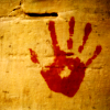 Description: a bloody handprint on a wall